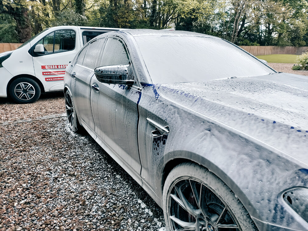 Pre-wash with snow foam, exterior safe wash including wheels and door shuts.